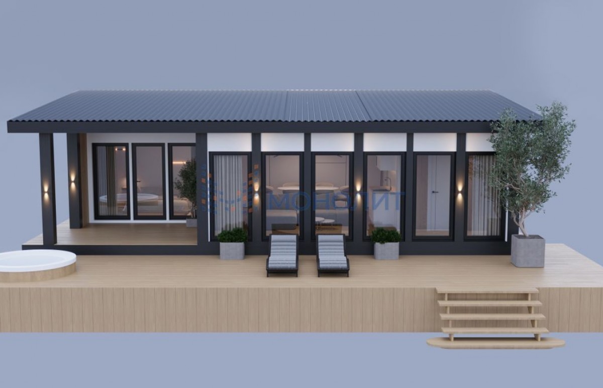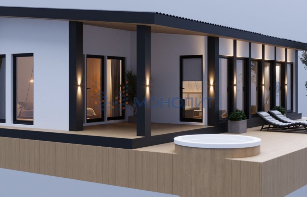 Стильный и функциональный дом, спроектированный для комфортного проживания гостей.