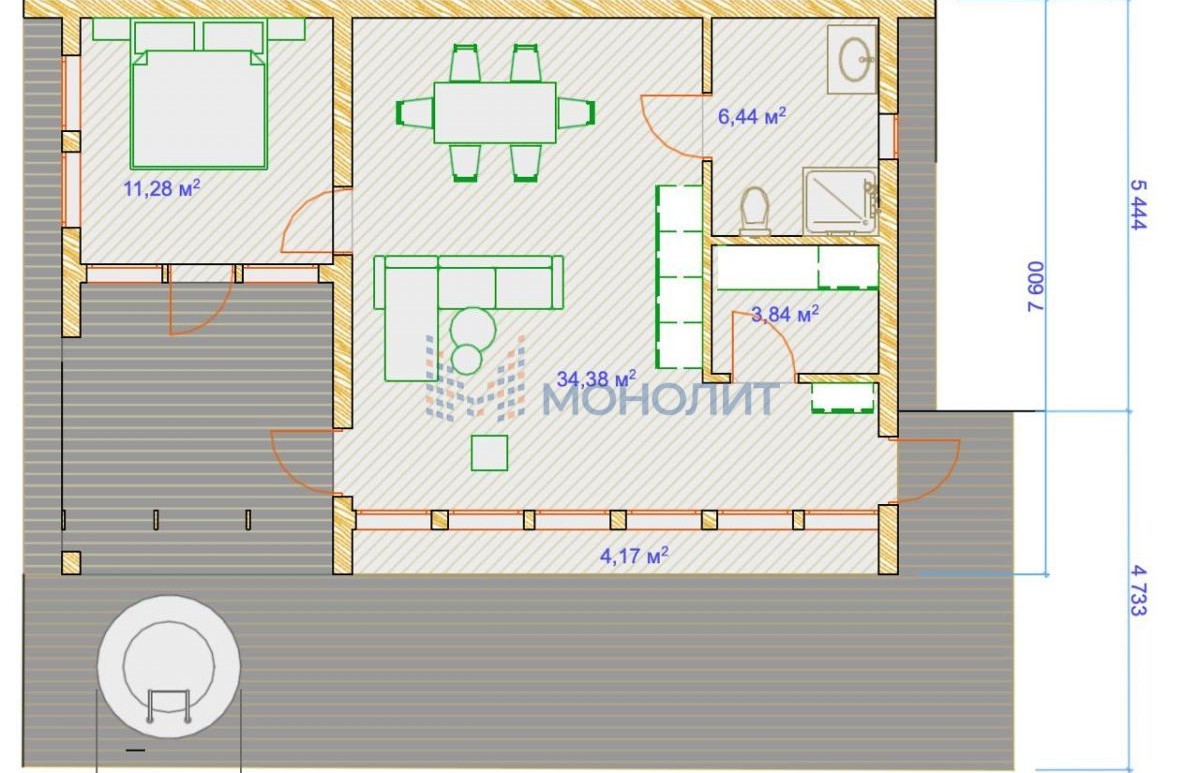 • Терраса с барбекю-зоной и мебелью для отдыха