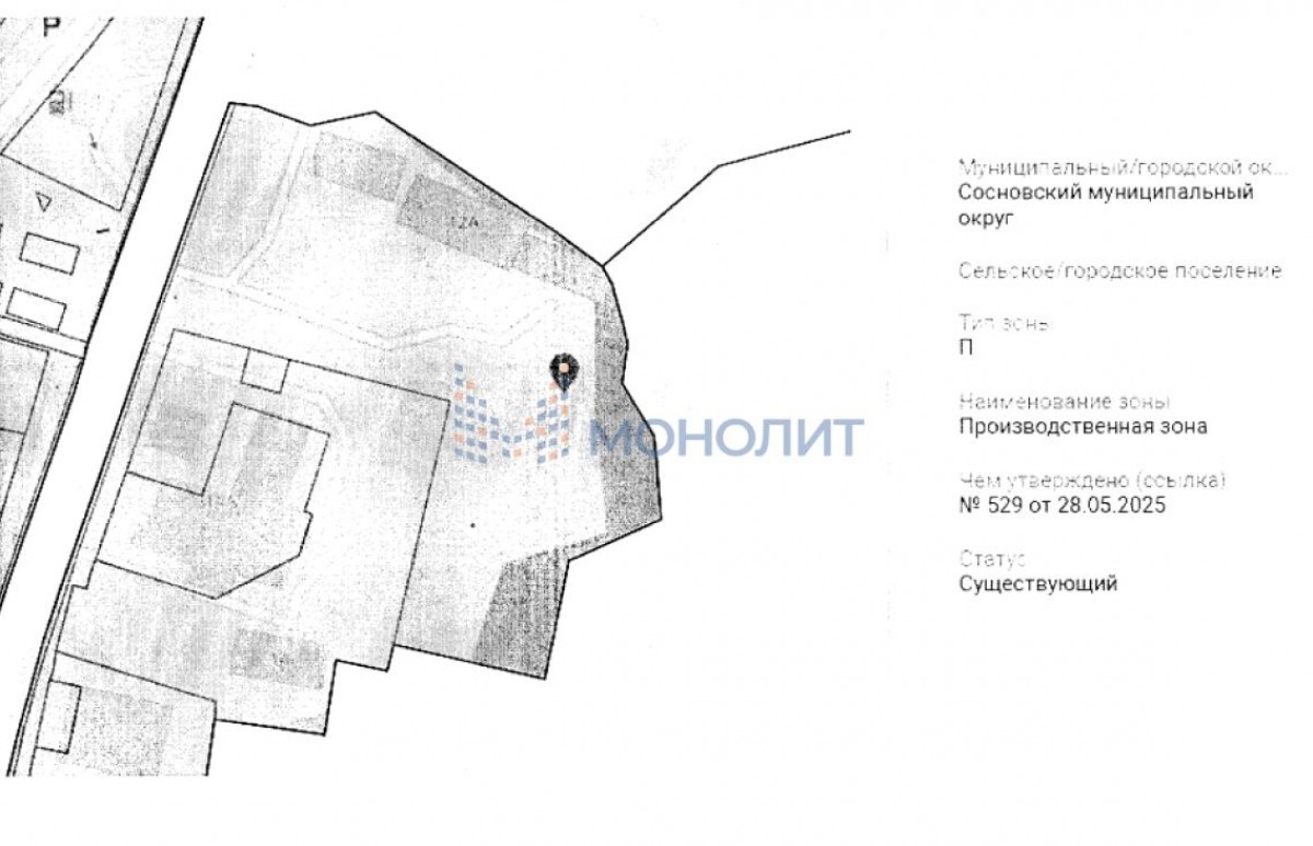 Предлагается к продаже ликвидный земельный участок: (Категория земель: Земли населенных пунктов. Виды разрешенного использования: В целях эксплуатации отдельно стоящих нежилых зданий.) находящийся на красной линии. Расположенный по адресу: Нижегородская обл, р-н Сосновский, рп Сосновское, ул Совхозная, дом 12 а. На участке своя ТП (ЭЛЕКТРИЧЕСТВО) выделенные мощностя 100 кВт (с разрешением увеличения до 640 кВт). Газопровод проходит прямо по границе участка. Центральный водопровод проходит по границе участка. Канализация септик (либо можно поговорить с соседями,чтобы подключиться к ним). Зона- П (производственная зона). Основные виды разрешенного использования земельного участка: Коммунальное обслуживание, Служебные гаражи, Тяжелая промышленность, Легкая промышленность, Фармацевтическая промышленность, Фарфоро-фаянсовая промышленность, Электронная промышленность, Ювелирная промышленность, Пищевая промышленность, Нефтехимическая промышленность, Строительная промышленность, Энергетика, Связь, Склад, Складские площадки, Целлюлозно-бумажная промышленность, Железнодорожные пути, Обеспечение внутреннего правопорядка, Улично-дорожная сеть. Расстояние от г.Павлово 22км, от Н.Новгорода 90км. Отличный трафик. Асфальт до участка. Собственник один. Сосновский район. Нижегородская область.