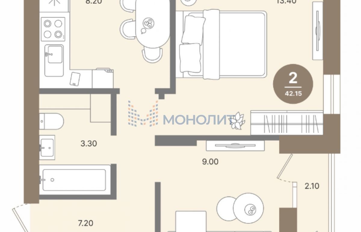 2-комнатная квартира, 42.15 м² - Объект 1595394