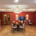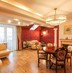 На 1 этаже квартиры располагается гостиная с камином, портал оформлен итальянским мрамором, мебель натурального дерева, светильниками создающими уютную атмосферу для семейных вечеров и приема гостей.