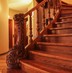 - На второй этаж ведет дубовая лестница с уникальной резьбой. Там 3 изолированные спальни, большой санузел с джакузи, душевой и сауной.