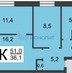 3-комнатная квартира, 51 м² - Объект 1609462