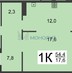 1-комнатная квартира, 54.4 м² - Объект 1616999