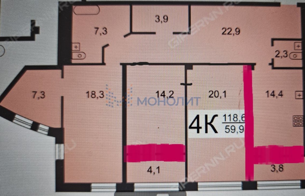 4-комнатная квартира, 118.6 м² - Объект 1617715