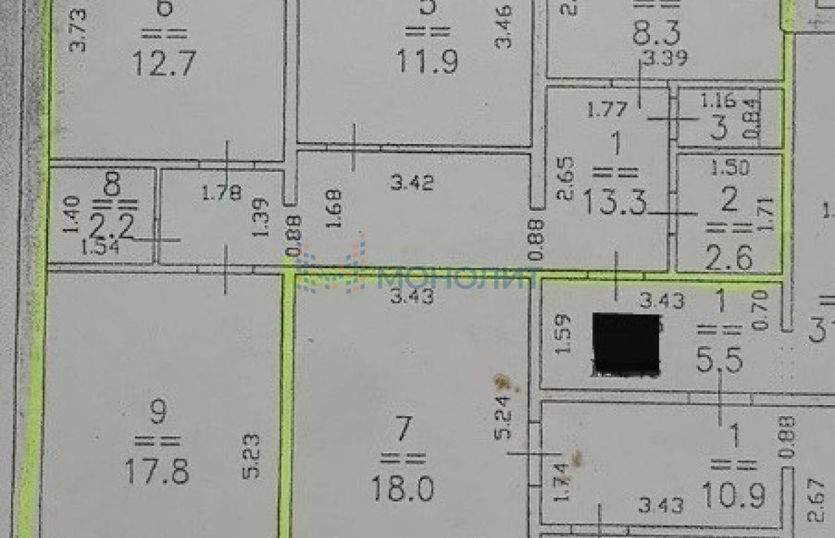 - Жилая площадь 43 кв.м
