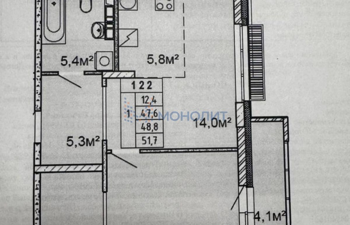 1-комнатная квартира, 51.7 м² - Объект 1632486