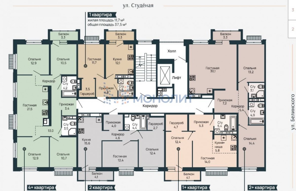 - Тип дома кирпично-монолитный