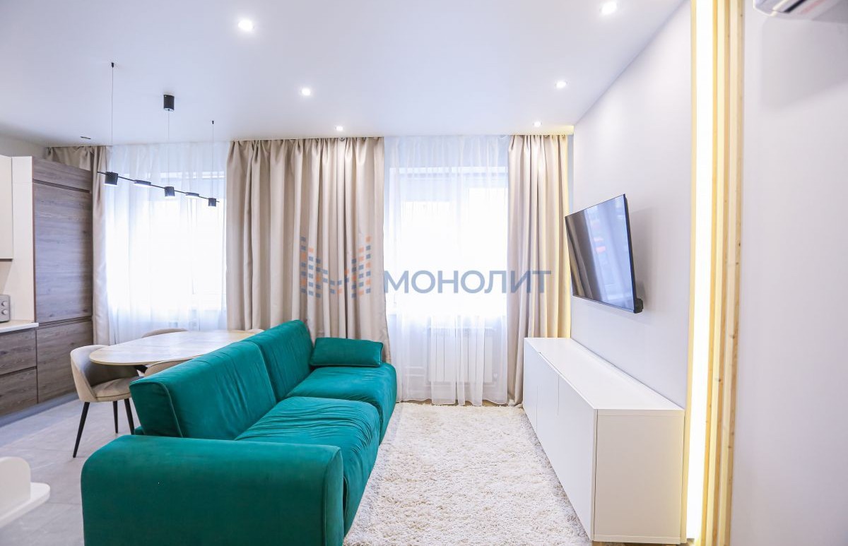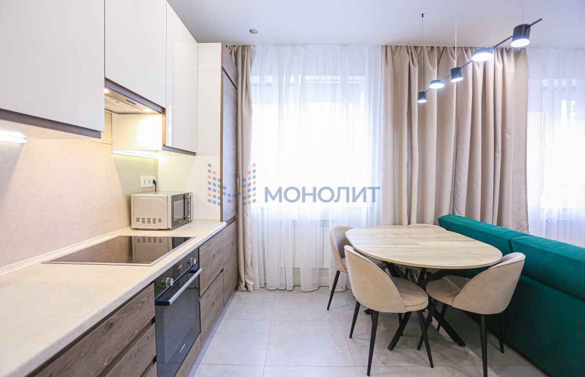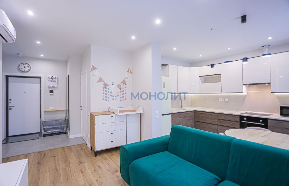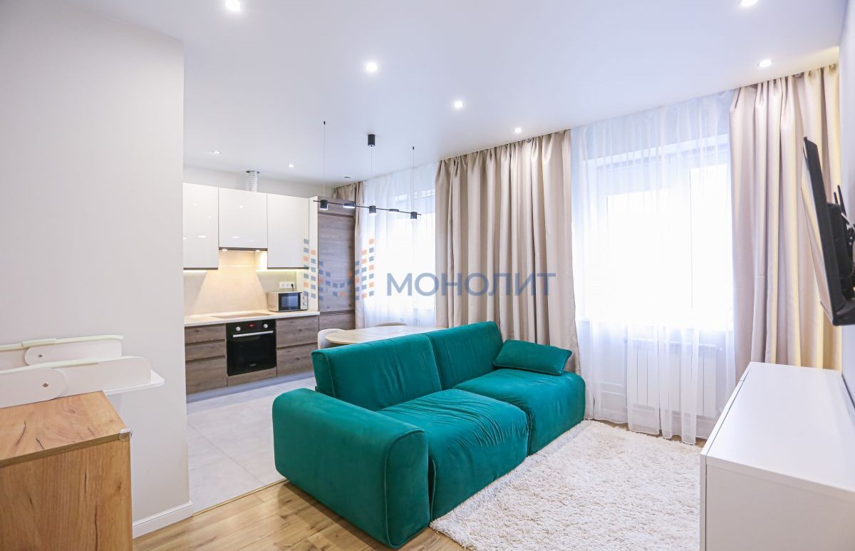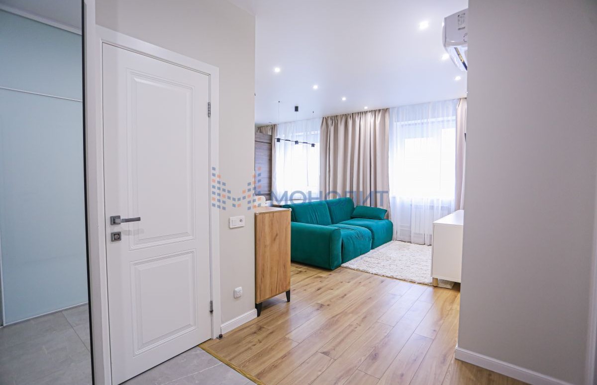 Квартира с современным дизайнерским ремонтом, состояние отличное, вложений не требует. В ремонте использовались только качественные дорогие материалы, прослужат долго. Продуманная планировка с большой кухней-гостиной, просторным зонированным санузлом и изолированной спальней с гардеробной, есть застекленная лоджия. Установлен новый кухонный гарнитур с встроенной техникой, обустроено много мест для хранения (остаются в квартире). Установлена сплит-система (в квартире всегда приятный климат). В квартире может остаться и другая мебель и техника по договоренности - отличный вариант для проживания или инвестиций, хороший спрос на аренду в этом районе, так как спокойный и чистый район не у дороги и удобно выезжать на пр Гагарина и рядом находятся ВУЗы. Соседи только со стороны санузла, в квартире тихо. Все окна выходят во двор, удобно - ребенок на детской площадке всегда на виду.