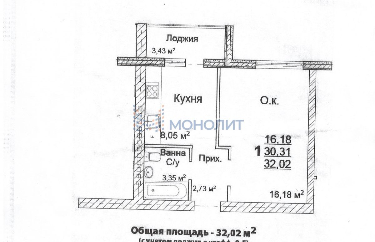 1-комнатная квартира, 32 м² - Объект 1638202