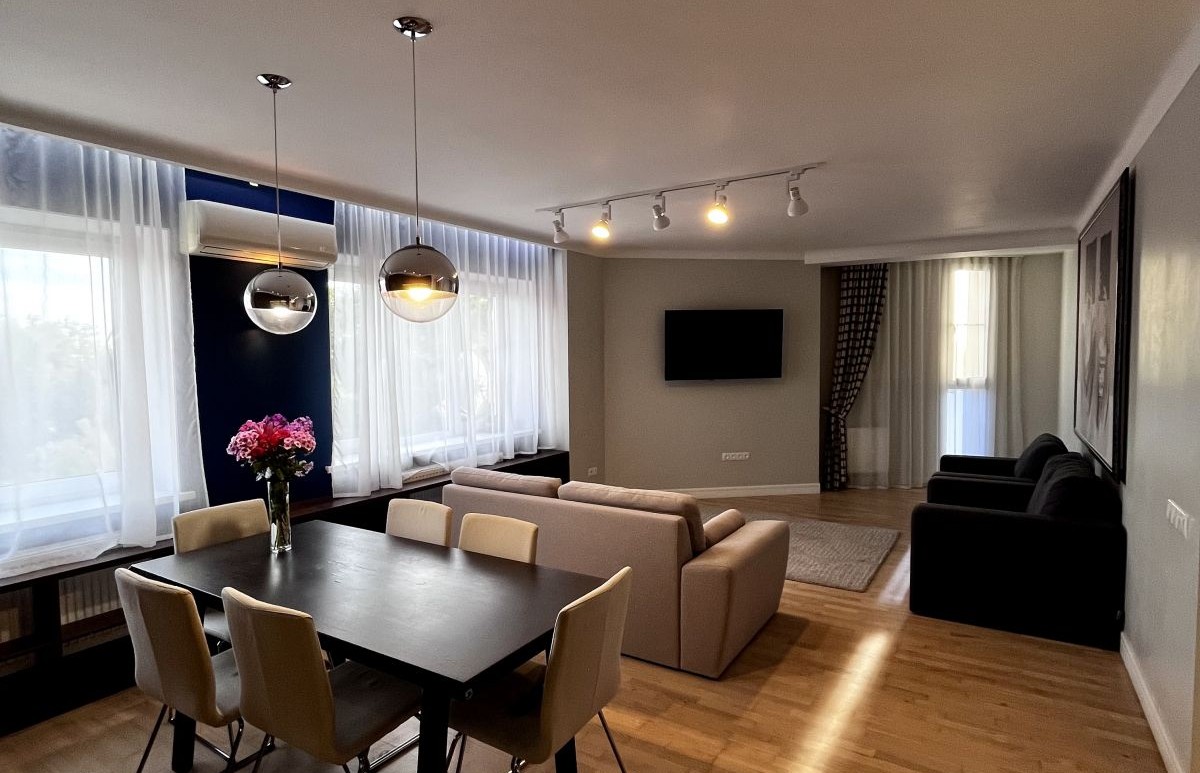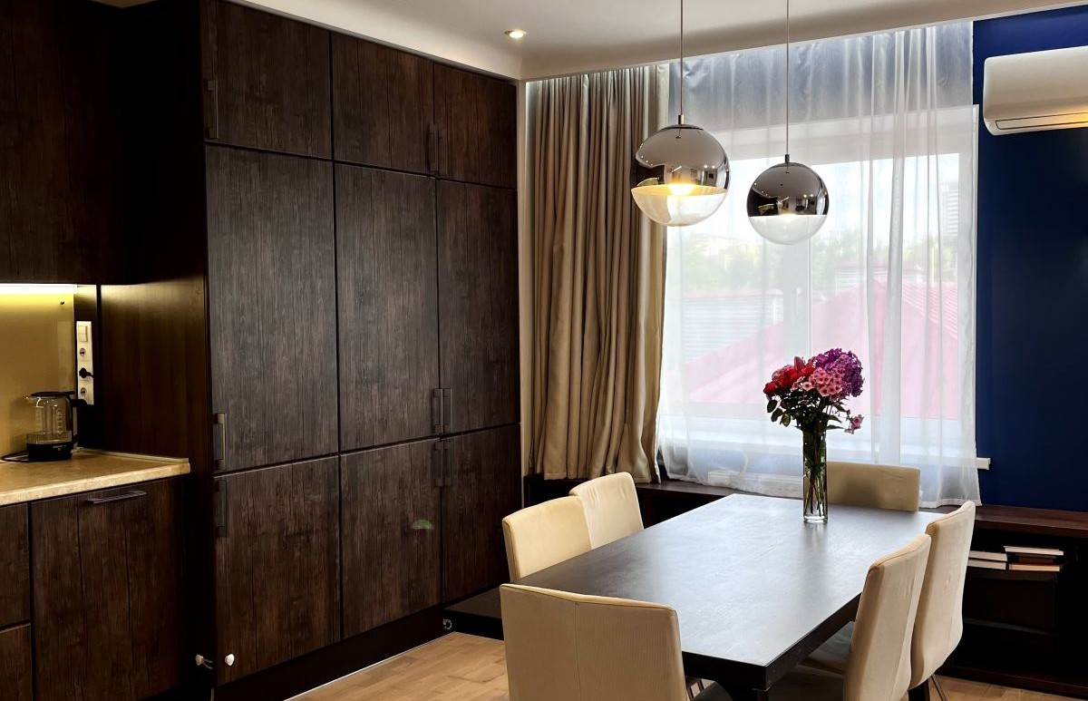 Квартира оснащена качественной мебелью и техникой (Siemens), для комфорта в любое время года предусмотрен теплый пол, кондиционеры, газовый котел. Квартира полностью готова к заселению и не требует вложений.