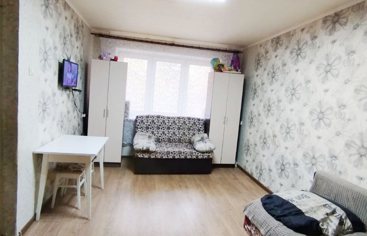 В чистой продаже теплая, светлая однокомнатная квартира с большой комнатой 19 м2 на среднем этаже в середине дома, Автозаводский район, Южное шоссе.