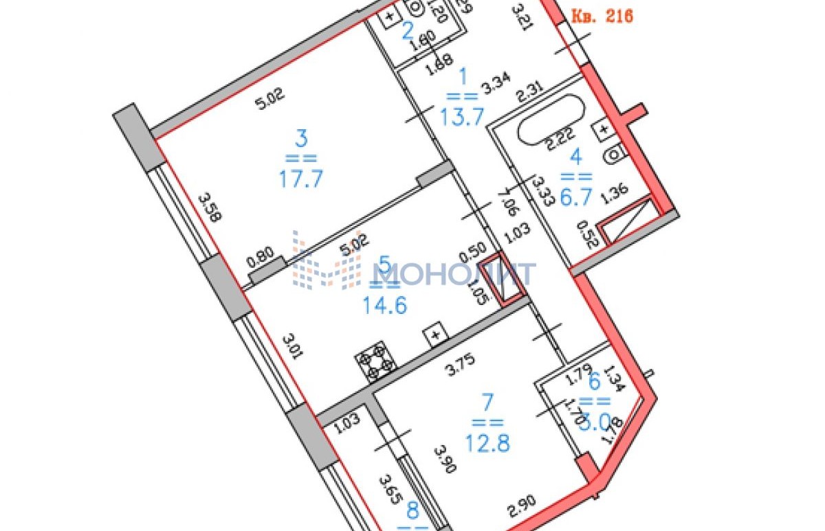 - Тип дома кирпично-монолитный