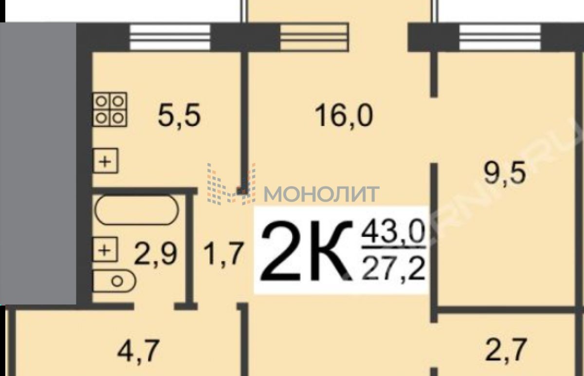 2-комнатная квартира, 42.8 м² - Объект 1641777