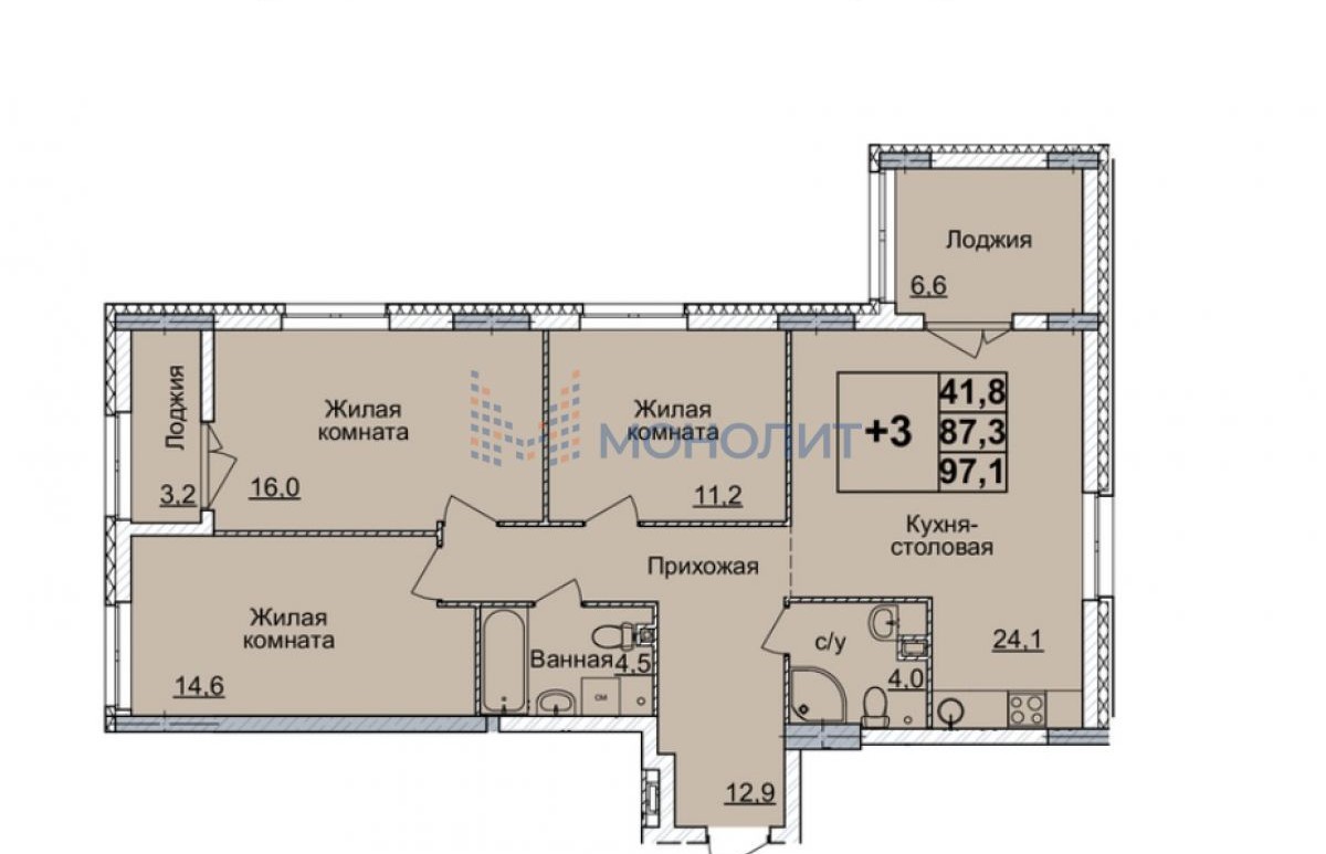 3-комнатная квартира, 97.6 м² - Объект 1642117