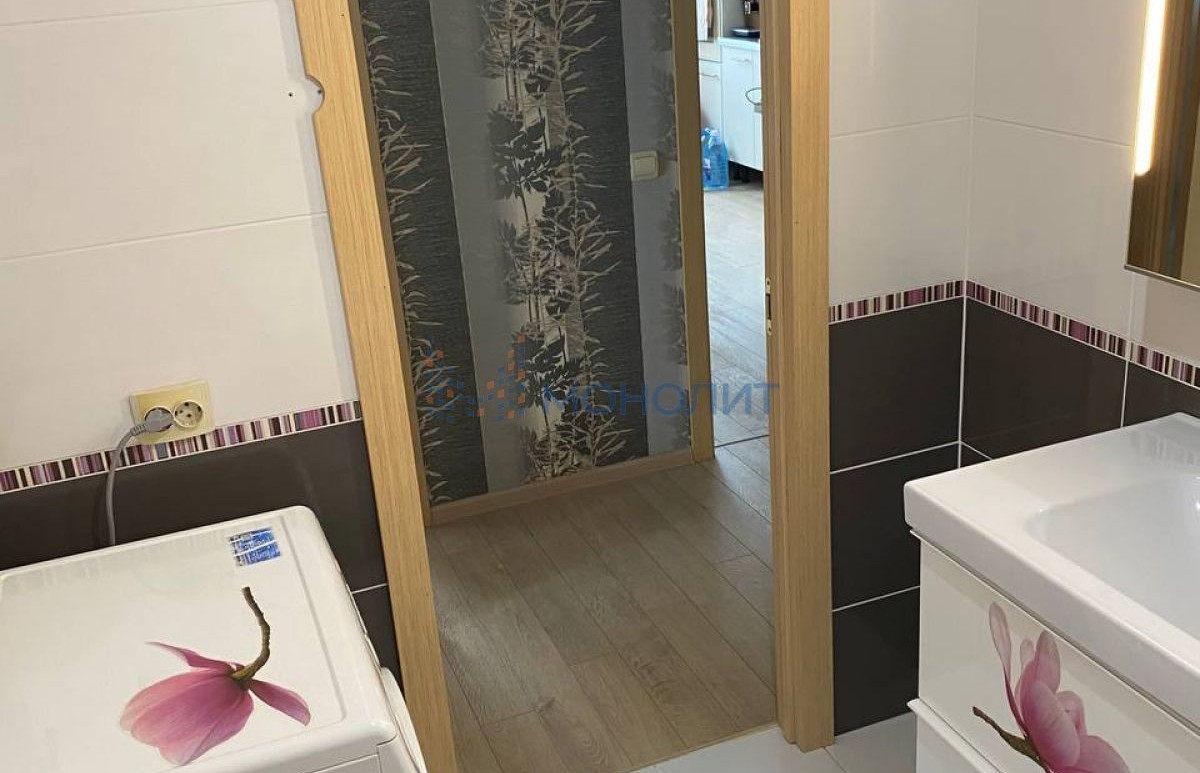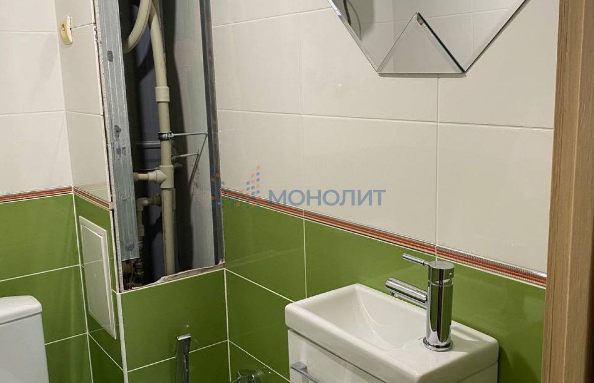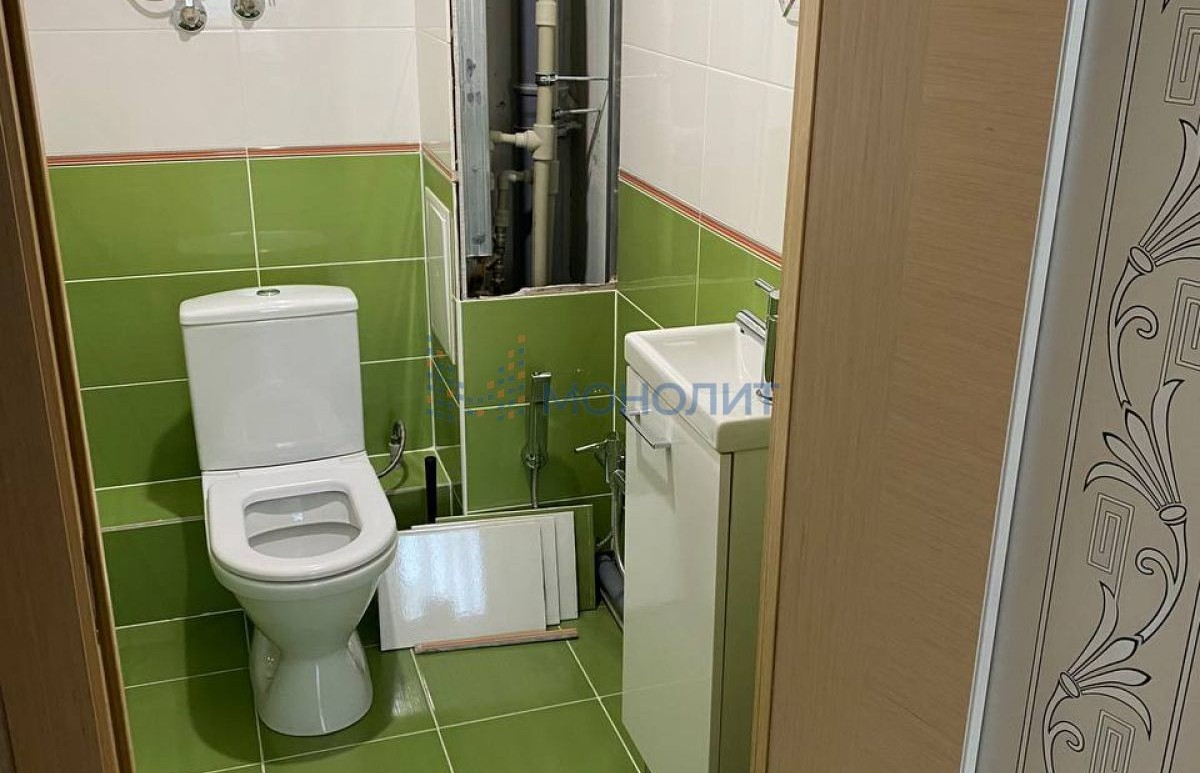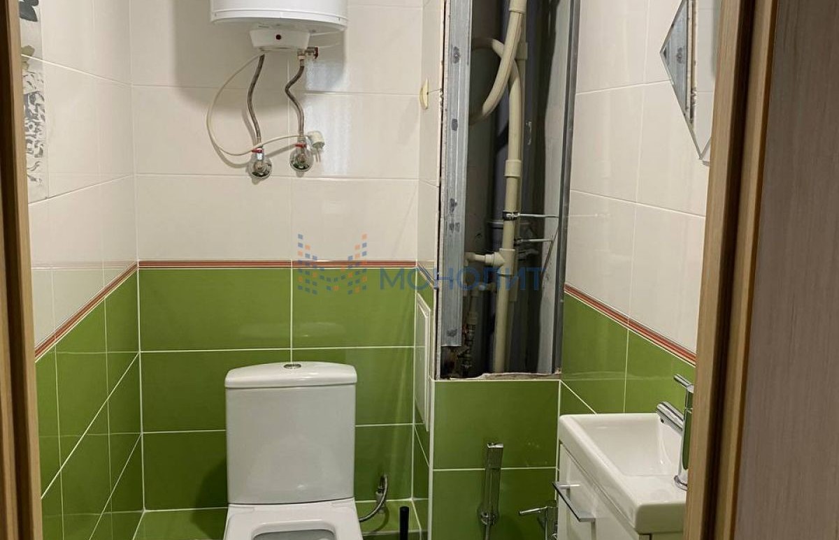 Санузел раздельный в кафеле, установлен бойлер, на полу ламинат.