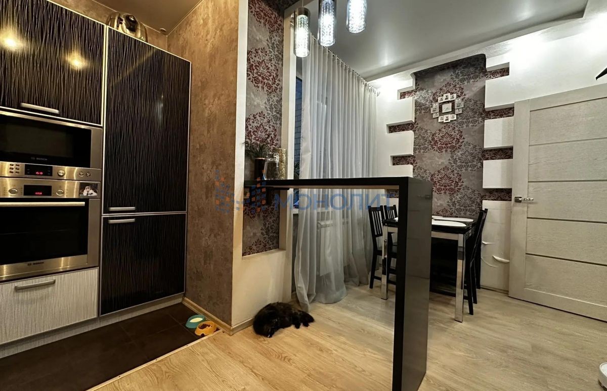 Ремонт выполнен из качественных материалов. Установлены современные потолки со спот-освещением, предусмотрена встроенная мебель. Кухня оборудована кухонным гарнитуром со встроенной бытовой техникой известных брендов Bosch и Liebherr.