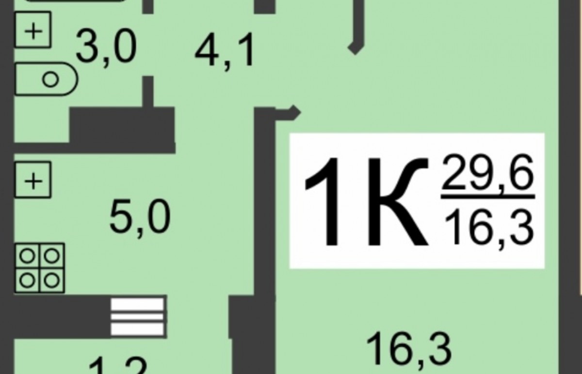 1-комнатная квартира, 29.6 м² - Объект 1645198