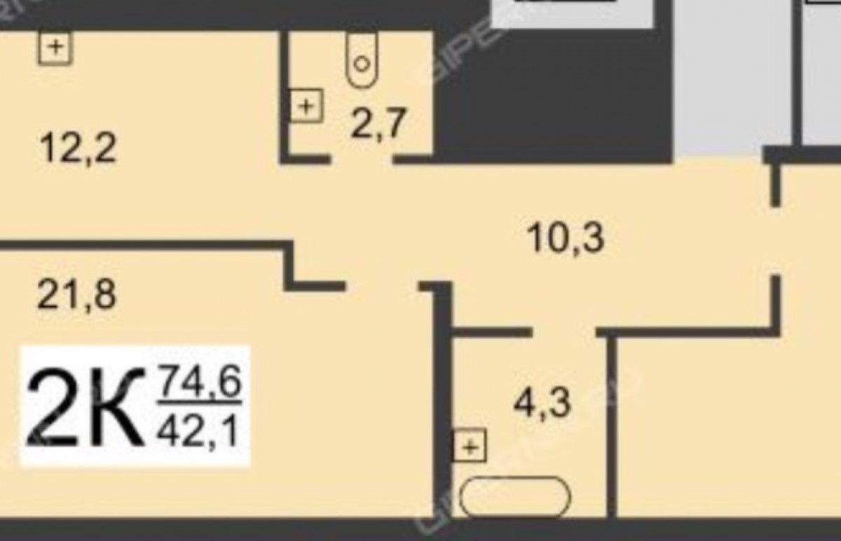 2-комнатная квартира, 74.6 м² - Объект 1646494
