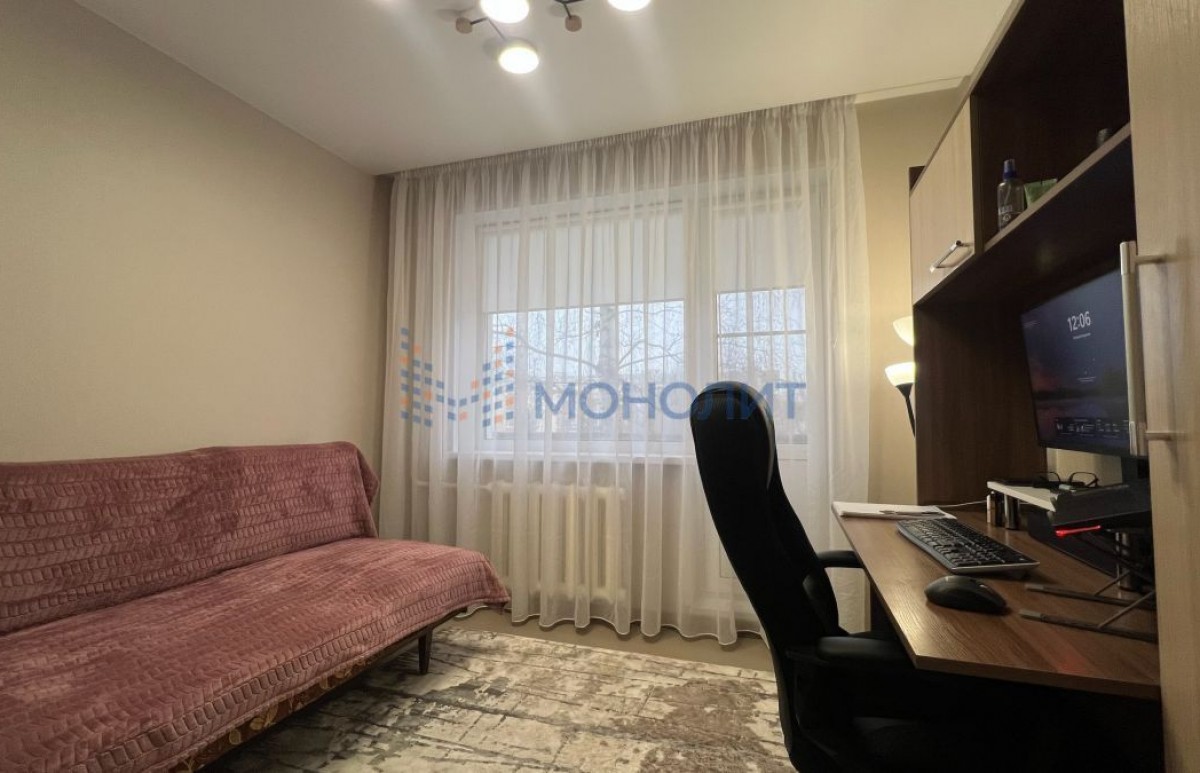 Окна выходят на две стороны — во двор и на улицу. Дом находится в Автозаводском районе, где всё необходимое в шаговой доступности: детские сады, школы и сетевые магазины. Остановка общественного транспорта находится всего в 3 минутах пешком. Это идеальный вариант для семьи любых размеров: средний этаж, много комнат для каждого ребенка и тихий благоустроенный двор.
