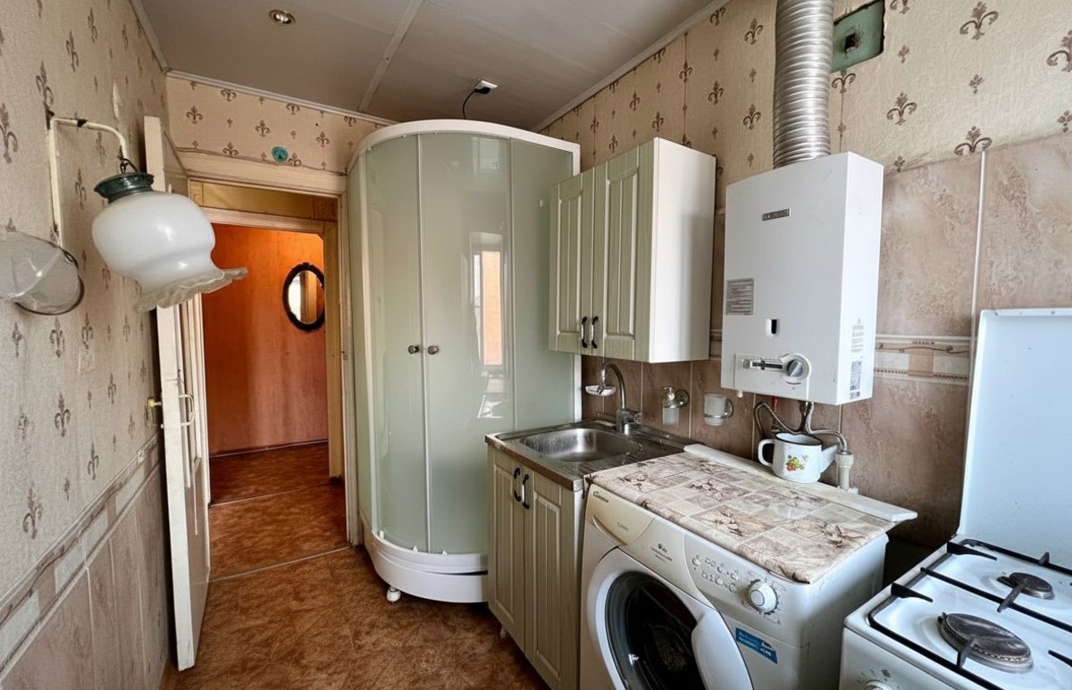 Комната 16.3 кв. м, кухня 5.4 кв.м, санузел совмещен, душевая кабина на кухне. Квартира теплая, светлая, требуется косметический ремонт. Поменяны окна, радиаторы, входная металлическая дверь.