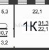 · Общая площадь: 31,3 м²