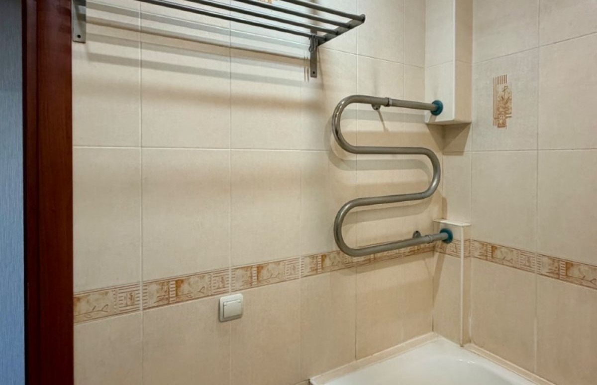 Ванная выполнена в светлом современном кафеле.