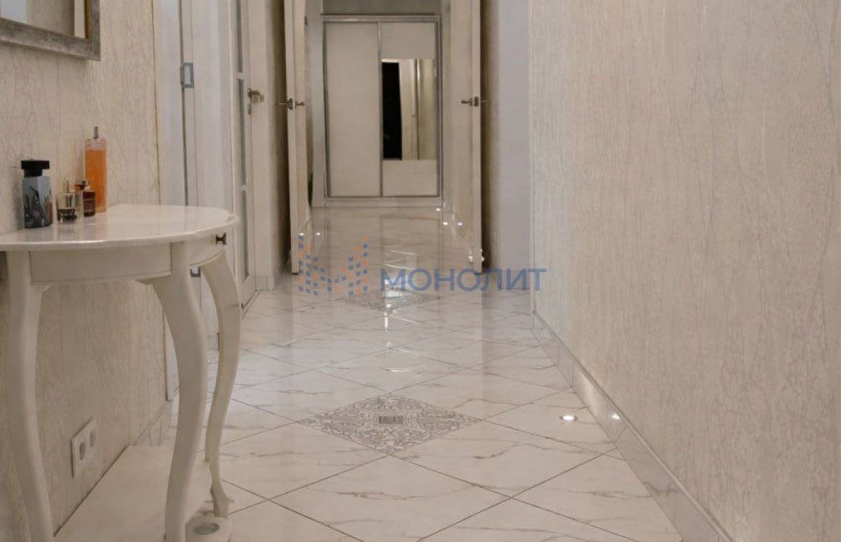 В 2023 году в квартире произведен евроремонт с использованием качественных импортных материалов. Заменены канализационные трубы и система водоснабжения, новая импортная сантехника. В большом зале и коридоре установлены теплые полы с ночной подсветкой. Во всей квартире натяжные потолки с фигурными сводами и подсветкой.