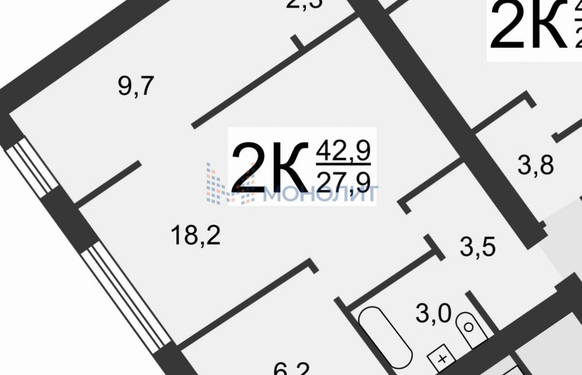 2-комнатная квартира, 41.2 м² - Объект 1741311