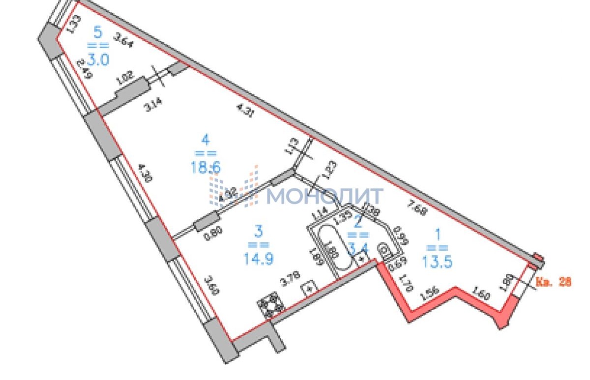 56,2 м.кв. Трехкомнатная
