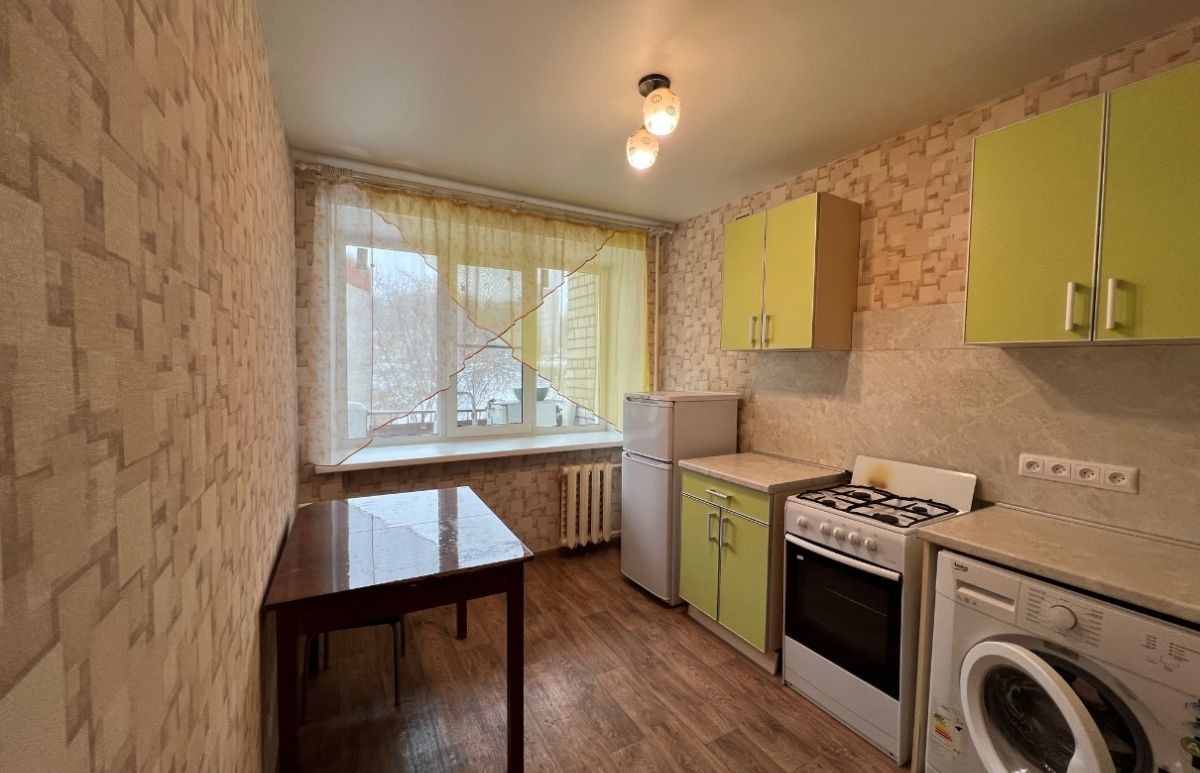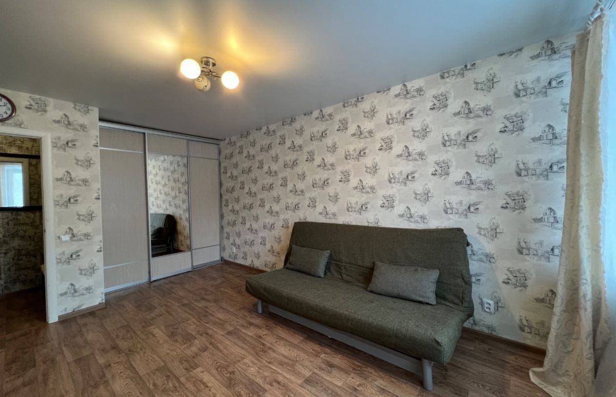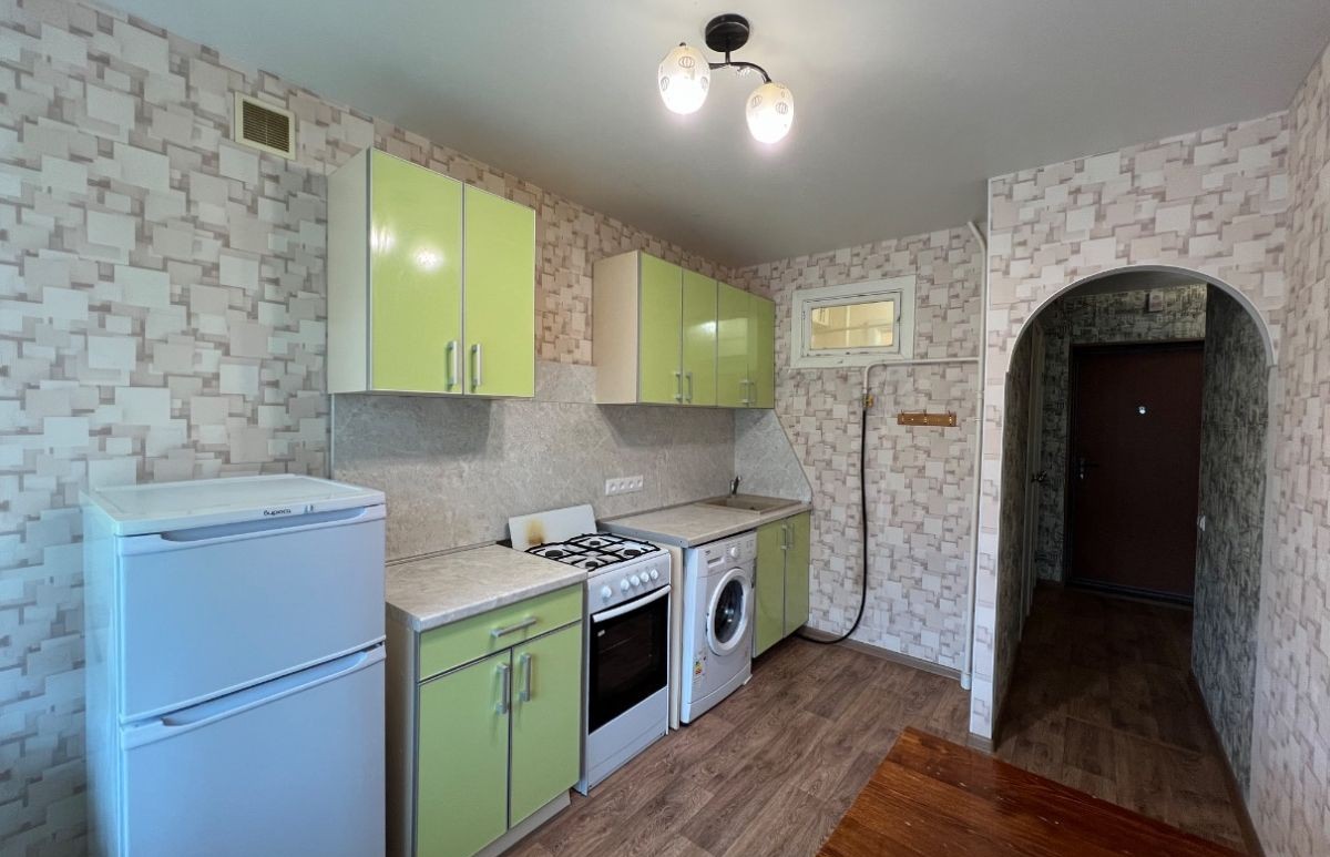 Квартира общей площадью 33,4 кв.м расположена на комфортном 4 этаже 10-этажного дома. Кроме того, есть просторная лоджия на всю длину комнаты и кухни - дополнительное место для хранения и отдыха. Эта квартира подарит самые лучшие условия для потенциальных покупателей. Кирпичные стены дают хорошую тепло- и шумоизоляцию. Большая кухня - 8,7 кв.м, в квартире остается вся мебель и техника остаются, чтобы Вы могли сразу заехать и жить: в кухне – кухонный гарнитур, стол, холодильник, стиральная машина; в комнате – встроенный шкаф, функциональный стеллаж с зоной ТВ, раскладной диван; в прихожей – открытая вешалка и тумба для хранения.
