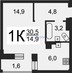 1-комнатная квартира, 30.5 м² - Объект 1747975