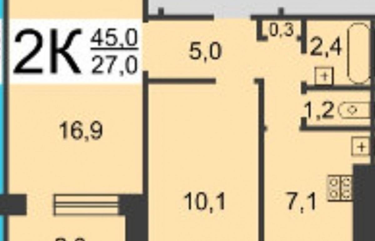 2-комнатная квартира, 43 м² - Объект 1758728