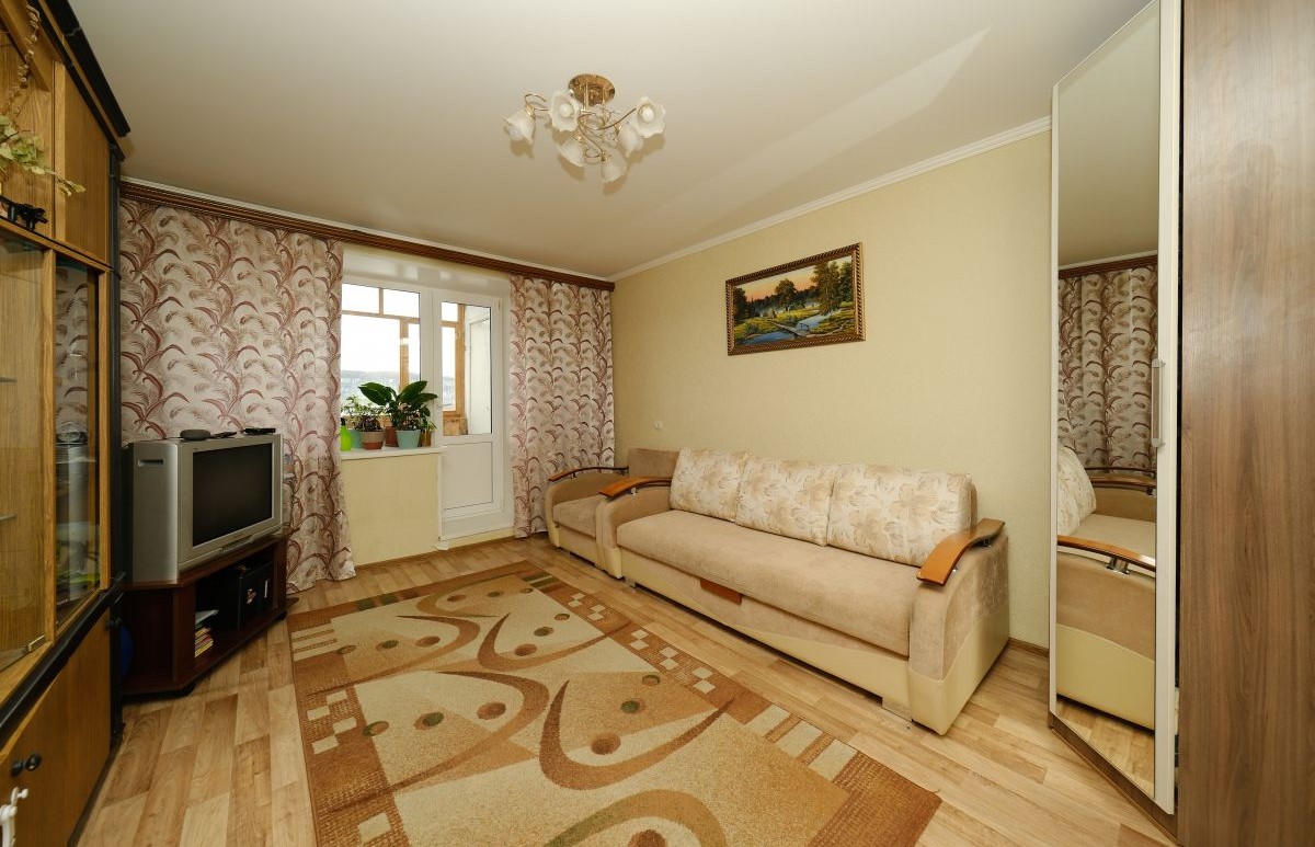 Окна квартиры выходят на разные стороны, что обеспечивает всегда свежий воздух в квартире. Из окон открывается отличный вид на верхнюю часть город, парк Швейцарии, реку Оку.