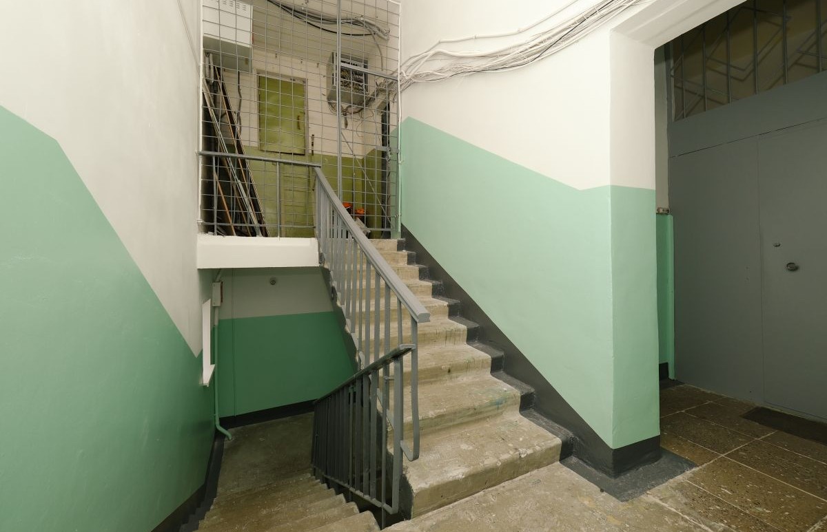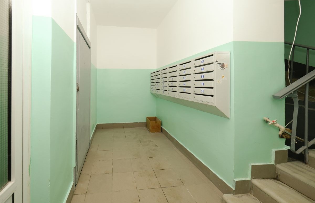 Подъезд недавно отремонтирован, большой тамбур на 2 квартиры.