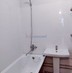 Ванная комната облицована плиткой и в ней достаточно места для размещения стиральной машины, чтобы не занимать кухонное пространство. Сантехника новая и ей почти никто не пользовался.