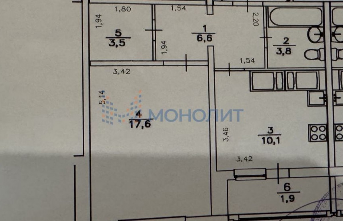 1-комнатная квартира, 41.6 м² - Объект 1790811