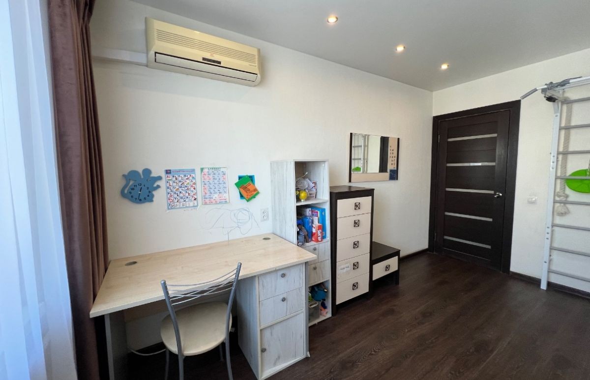 Квартира расположена на 8 этаже 9-этажного дома. Общая площадь квартиры 63,9 кв.м. , плюс балкон и лоджия, просторная кухня 9,3 кв.м, три изолированные комнаты 17,2 кв.м, 12,9 кв.м и 8,2 кв.м.