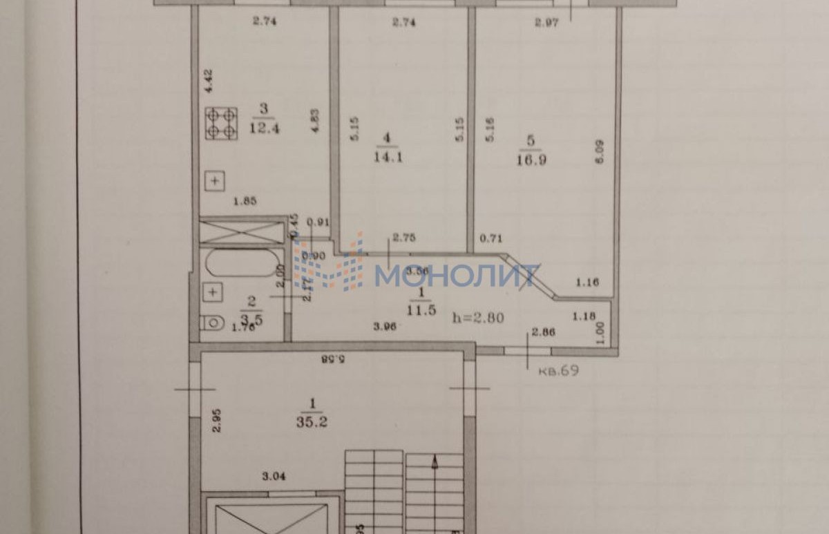 2-комнатная квартира, 58.4 м² - Объект 1800773