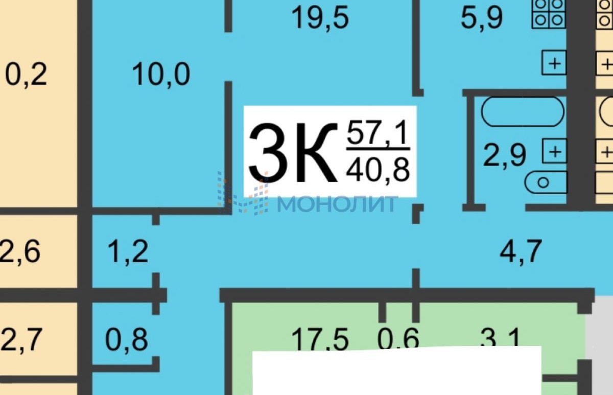 3-комнатная квартира, 56.7 м² - Объект 1801442