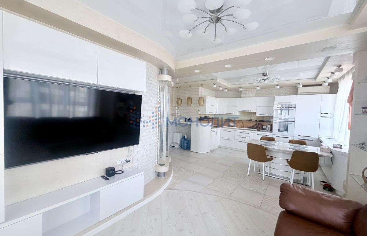Ремонт выполнен из качественных материалов. Новому собственнику остается вся мебель и техника! Зона прихожей, коридора, кухни и лоджии оборудована теплым полом, а панорамное остекление открывает завораживающий вид на реку «Волгу» и городское пространство.