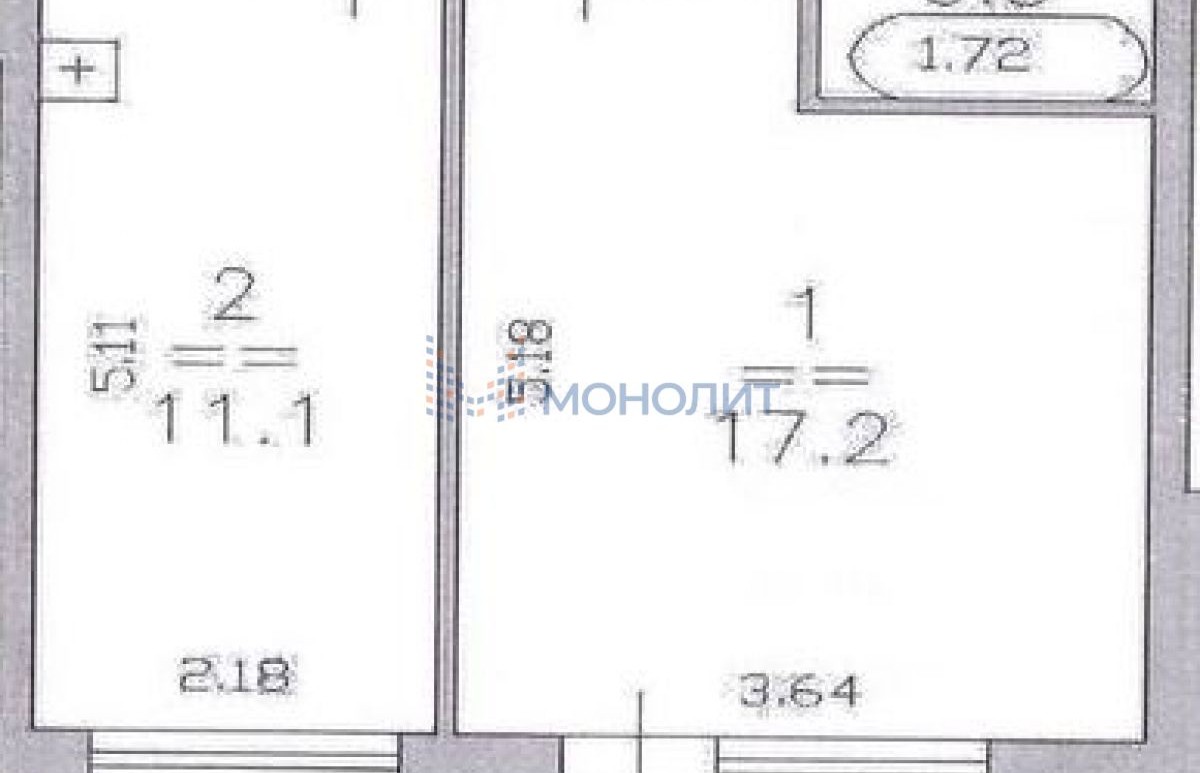 - Жилая площадь 17 кв.м