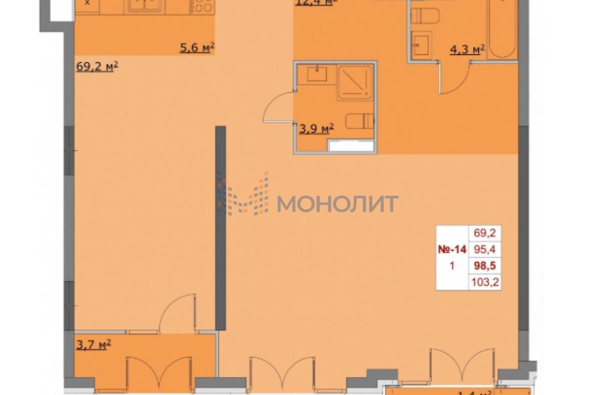 2-комнатная квартира, 95 м² - Объект 1814649