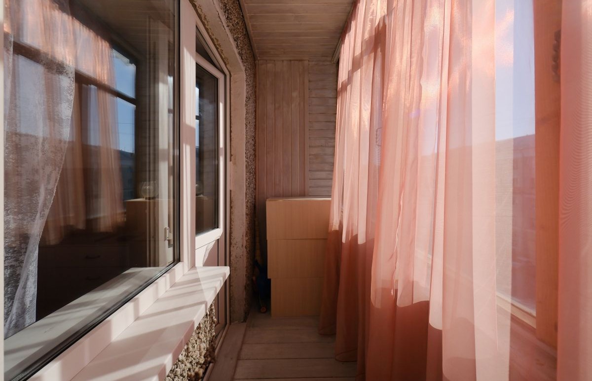 Просторный застекленный балкон.