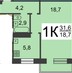 1-комнатная квартира, 31.5 м² - Объект 1819413