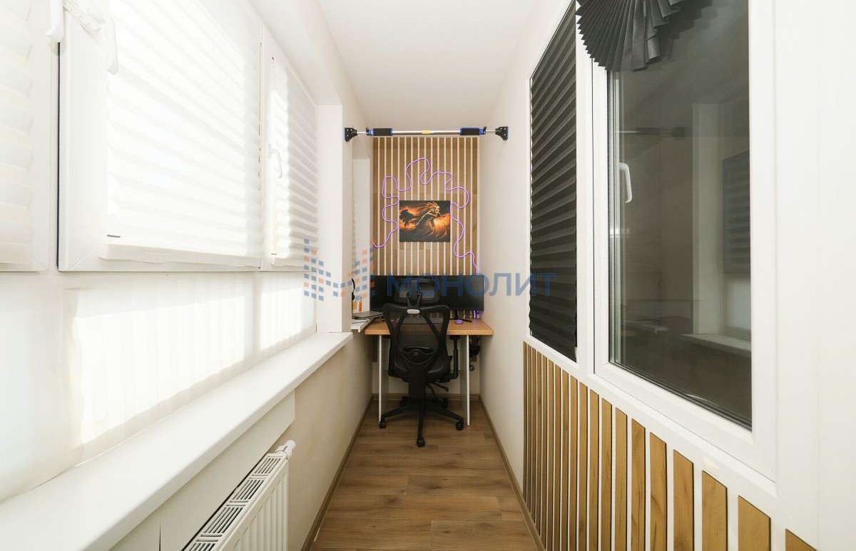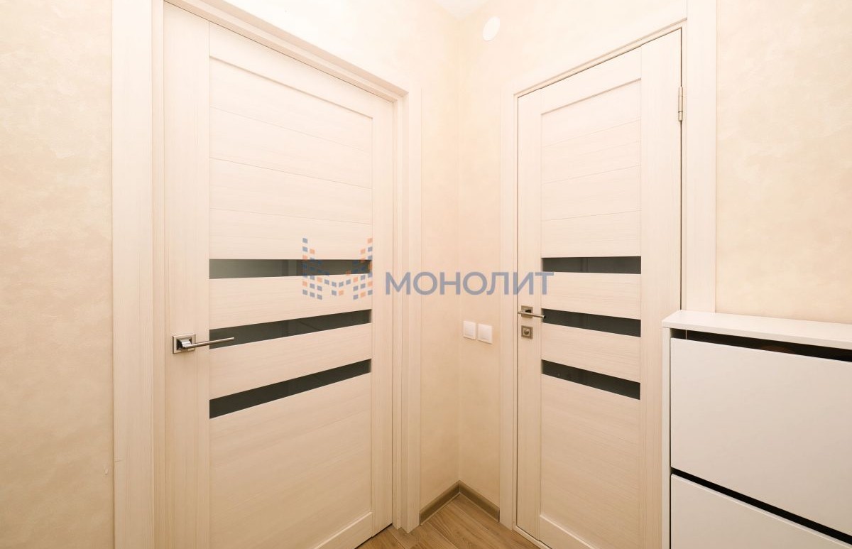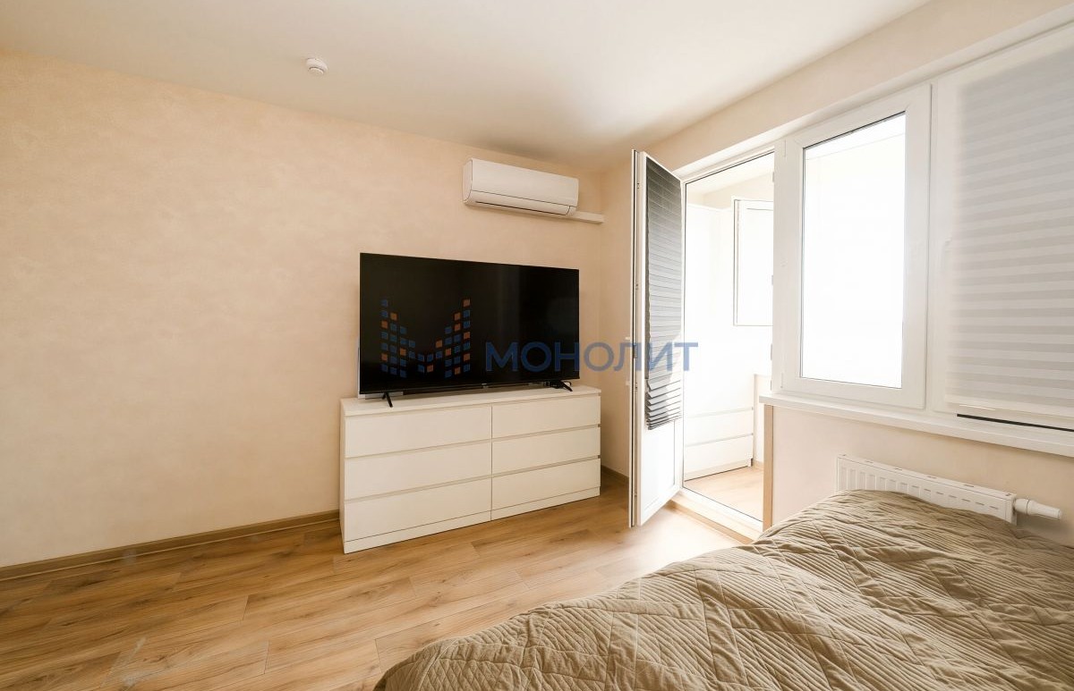 Хороший ремонт, качественные двери, ламинат, обои, окна, сантехника. Хорошая входная дверь. Кухонный гарнитур, кондиционер остаются в квартире. Полностью готовый вариант для проживания, все в хорошем состоянии, вложений не требуется никаких.