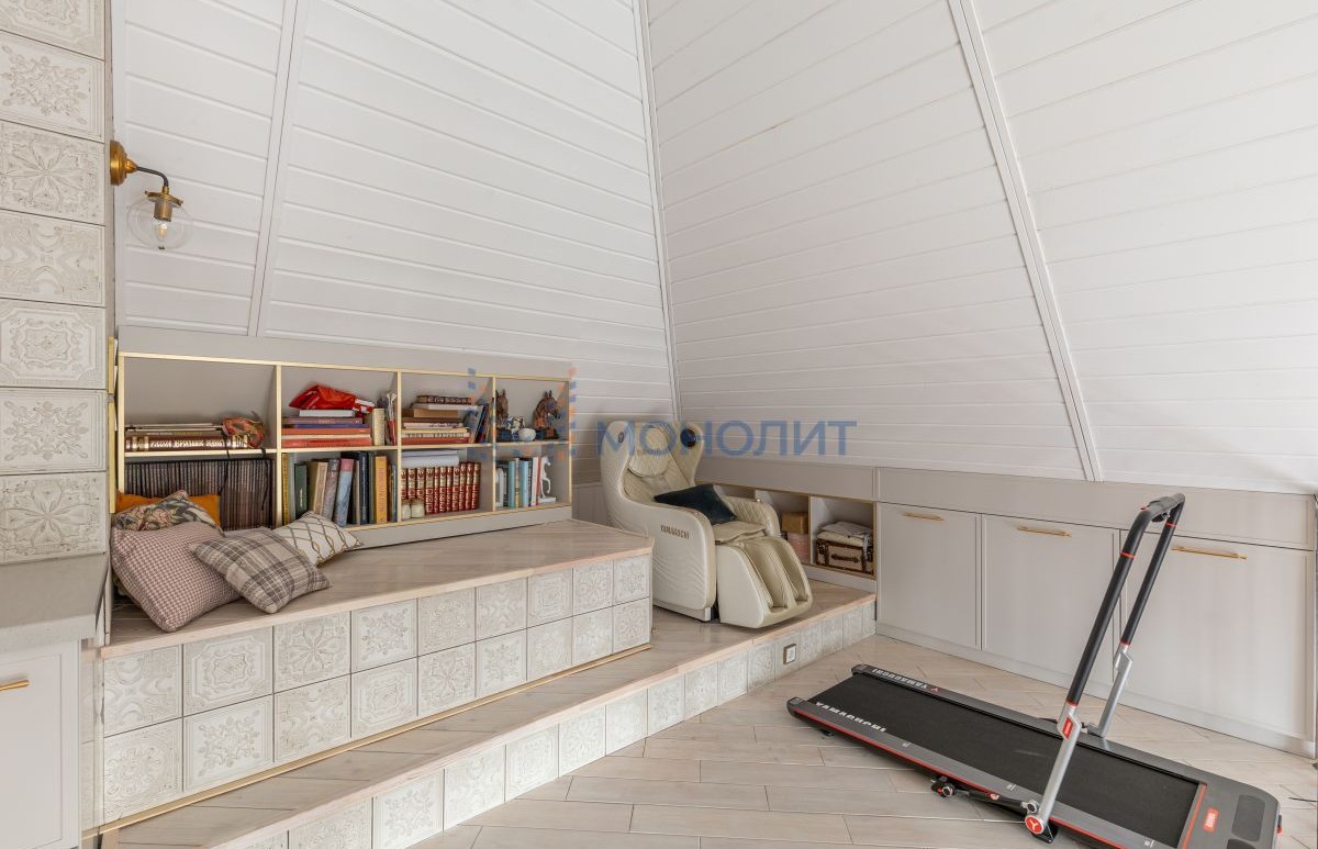 На втором этаже расположен кабинет, установлено массажное кресло.