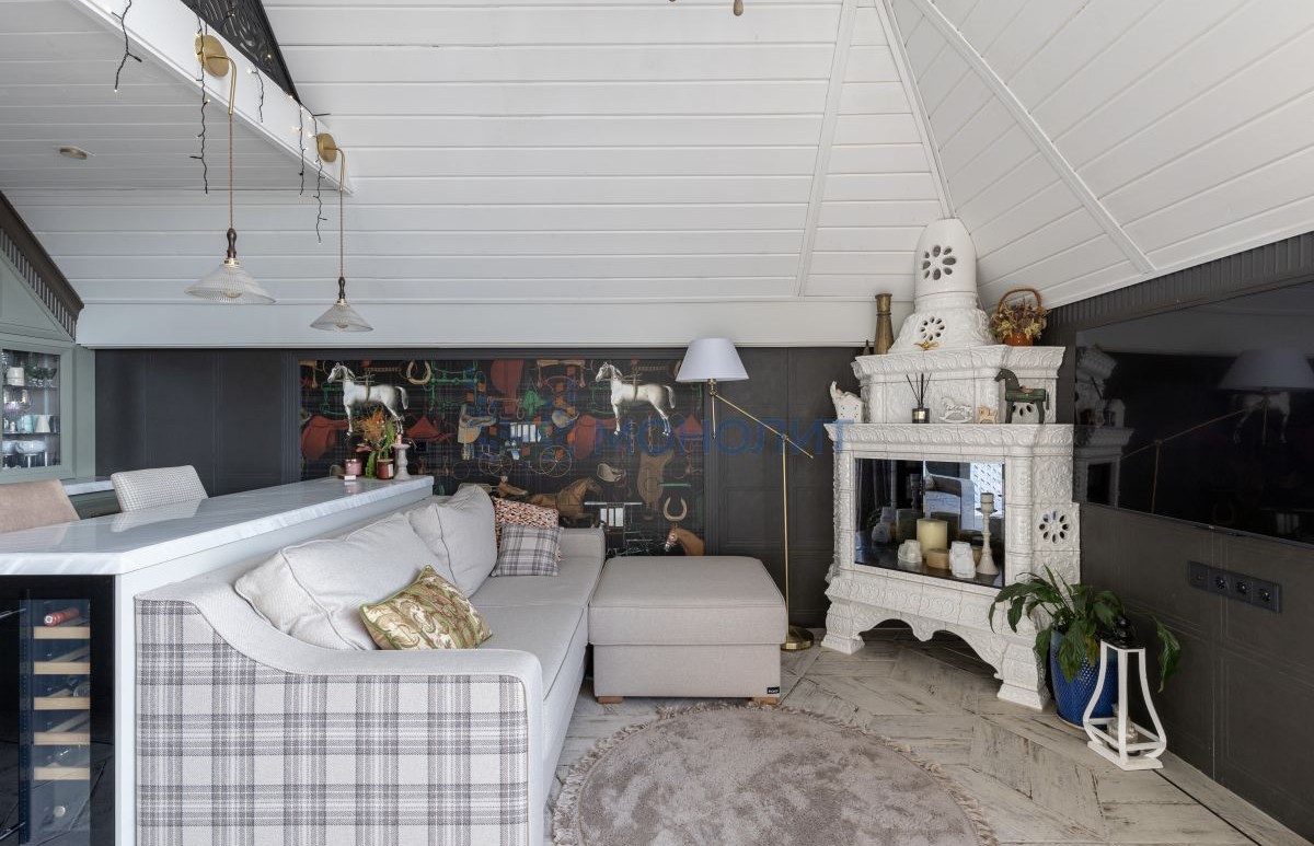 Камин в гостиной из натуральных изразцов.