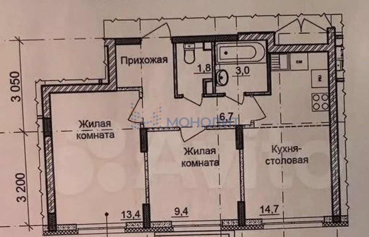 Продуманная планировка:— Просторная кухня 14,7 кв.м — отличное место для семейных ужинов и встреч с друзьями— Изолированные комнаты 13,4 и 9,4 кв.м — подойдут для спальни, детской или кабинета— Удобное распределение пространства для комфортной жизни