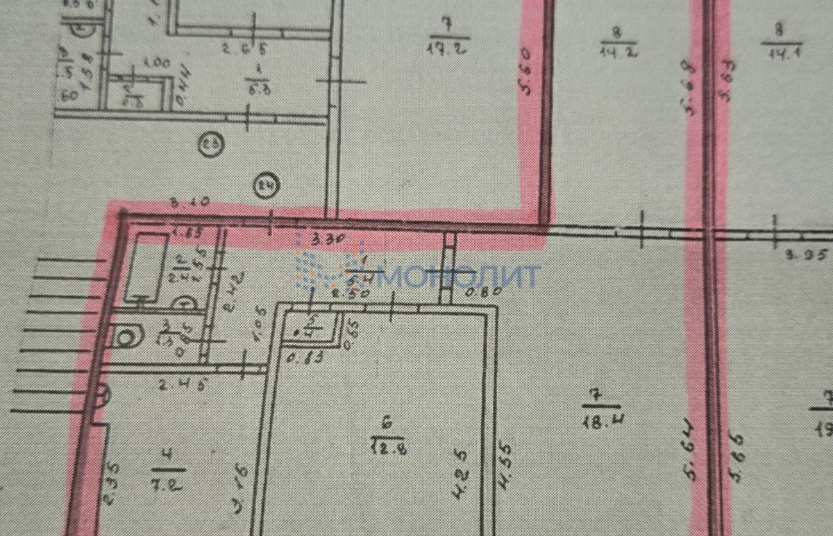 3 изолированные комнаты:18,4 кв.м., 14,2 кв.м. и 12,8 кв.м.